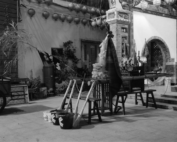 Before the rope is taken through the streets to be burned at the ocean shore, every wall, tree, door, and window on the predetermined route is plastered with paper protective talismans. In the hours leading up to the excursion, stores have closed early and everyone has gone home. Visual documentation of the ritual itself is prohibited.